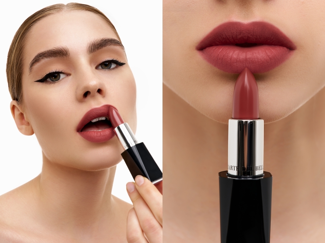 - Помада дарит губам потрясающий насыщенный оттенок с полуматовым вельветовым финишем, идеально подходящим как для дневного макияжа, так и для вечерних выходов.