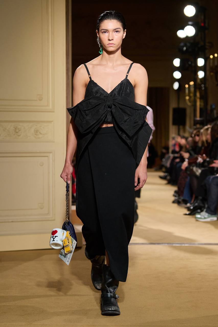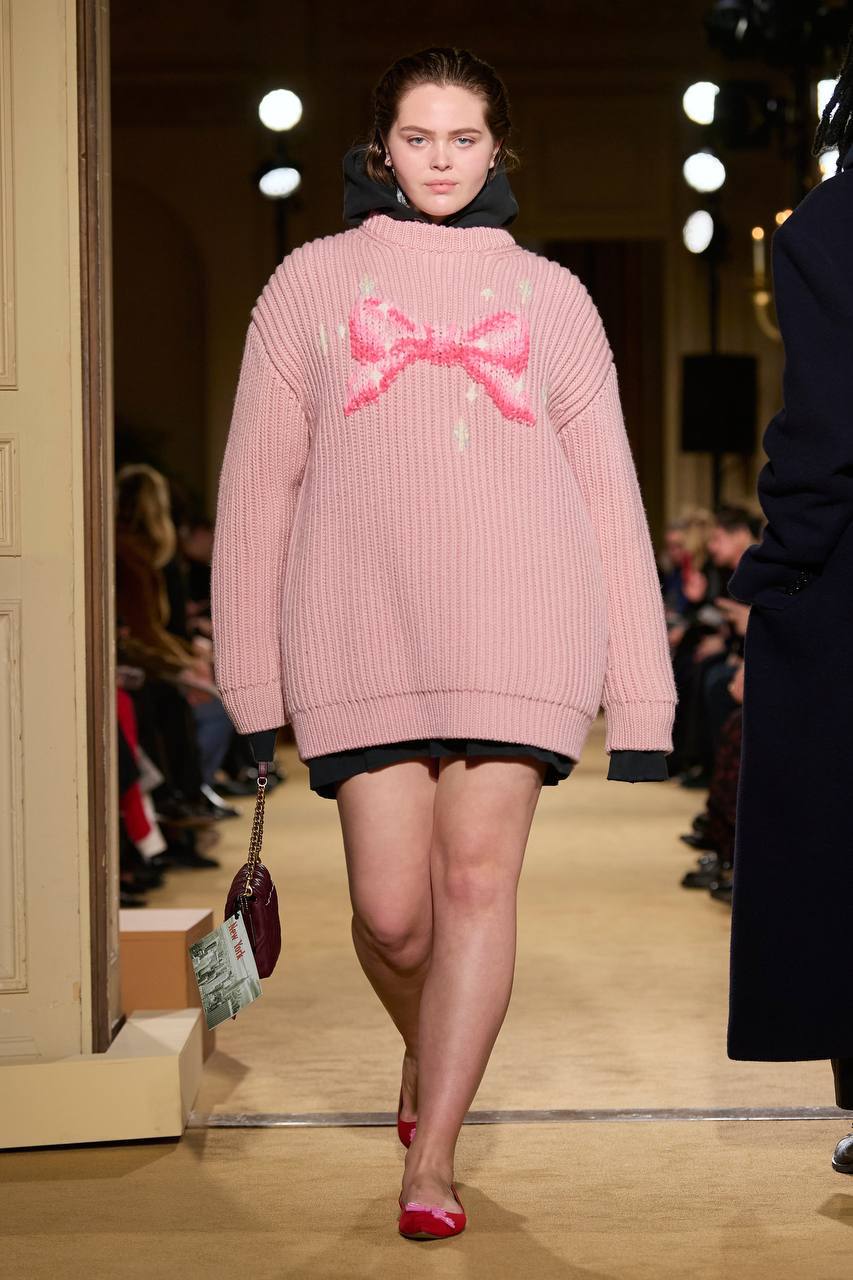 Романтичность коллекции подчеркивается бантами и нежно-розовыми оттенками, а практичность - базовыми джинсами, тренчами, худи в нейтральных тонах и ботинками. В коллекцию также включены кожаные мини-шорты, фактурные юбки и свитера с принтами, которые добавляют образу изюминку.
